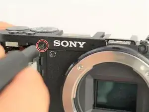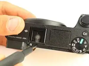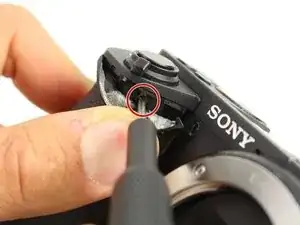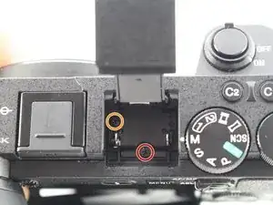 Снимите один винт JIS 00 длиной 2,5 мм сверху рядом с креплением вспышки.