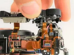 Осторожно отключите два ленточных разъёма, соединяющие верхнюю сборку с остальной частью камеры.
