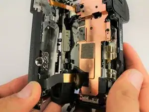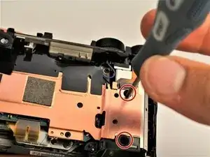 Последние винты, удерживающие верхнюю панель, доступны после снятия задней части камеры.