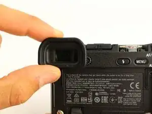 Возьмитесь за наглазник видоискателя; сдвиньте его вверх и снимите с видоискателя.