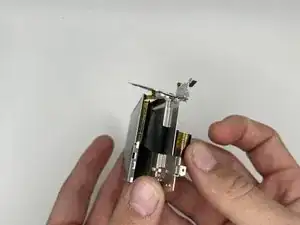 Удалите серебристый винт 4 мм крестовой отверткой №000 со серебристого кронштейна, прикреплённого к материнской плате.