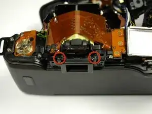 Используя отвертку Phillips #00, открутите два винта Phillips размером 4.9 мм, расположенные по обеим сторонам видоискателя.