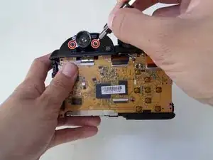 Удалите два винта 4 мм крестовой отверткой Phillips #000 под видоискателем.
