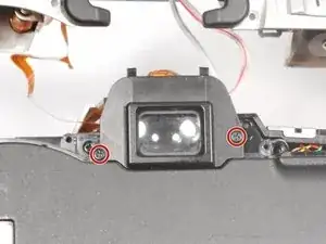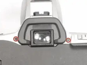 Снимите (2) чёрных винта Phillips #00 длиной 5 мм, расположенных по обеим сторонам видоискателя.