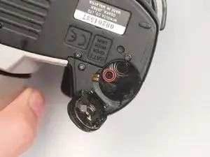 Выверните (1) чёрный винт Phillips #00 длиной 5 мм, расположенный под козырьком вспышки.