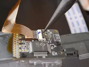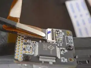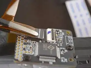 Используйте пинцет, чтобы отлепить ленту, закрывающую ZIF‑разъём межсоединительного кабеля на плате управления.