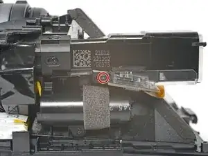 Используйте крестовую отвёртку, чтобы выкрутить два винта длиной 5.9 мм, крепящие видоискатель: один около передней части видоискателя и другой по боковой стороне.