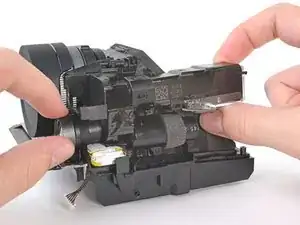 Если вы продолжаете разбирать устройство дальше, наденьте крышку объектива обратно, чтобы предотвратить появление царапин на объективе.