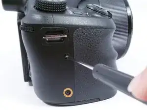 Выкрутите 2 винта с крестообразной головкой (4 см) на правой стороне камеры.
