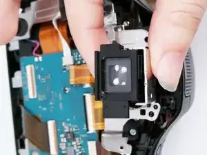 Осторожно отсоедините ленточный кабель, соединяющий видоискатель с материнской платой.