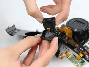 Если видоискатель повреждён или работает неправильно, выполните эти шаги, чтобы заменить его на новый. Эти шаги также помогут при замене кнопки спуска затвора и вспышки. Для этого руководства вам понадобится отвертка PH000, пластиковый инструмент для открытия, металлические лопатки и магнитный коврик или пластиковый пакет.
