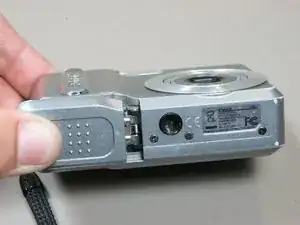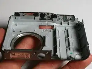Осторожно оттяните половину корпуса с экраном (заднюю половину) от остальной части камеры.