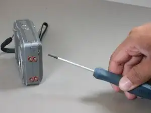 Отверните и извлеките четыре винта с левой стороны камеры (если смотреть со стороны экрана).