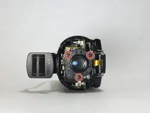 Удалите винт 4 мм рядом с пряжкой ремня, ближайшей к объективу.