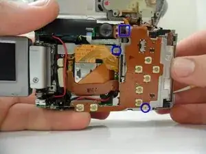 При сборке помните о том, чтобы возвращать винты на те же места, откуда вы их удаляли. В противном случае вы можете повредить камеру.