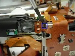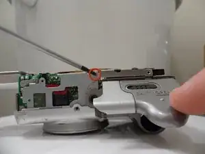 Удалите винт Phillips №00, расположенный внутри верхней части отсека для карты памяти.