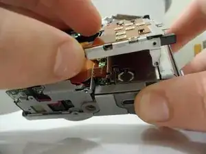 В других версиях этой камеры есть язычок, который фиксирует верхнюю часть от ремешка. Если у вас он есть, вы не сможете полностью отсоединить верхнюю часть, пока не удалите верхний винт в Шаге 8.