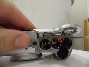 Удалите два винта Phillips №00 с боковой стороны камеры.