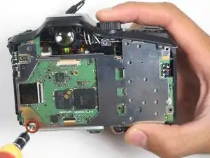 Наконец, снимите два винта, расположенные на левой стороне фотоаппарата.