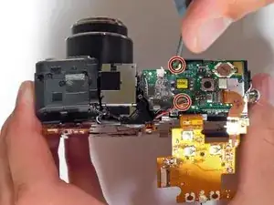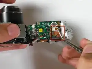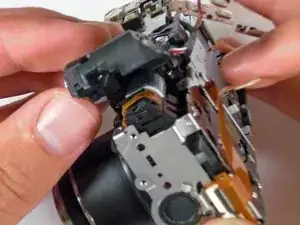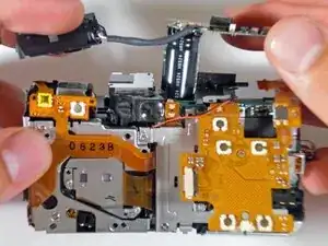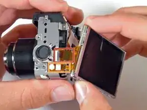 Отсоедините узкую ленточную шлейф-ленту, чтобы освободить ЖК-экран от корпуса камеры.