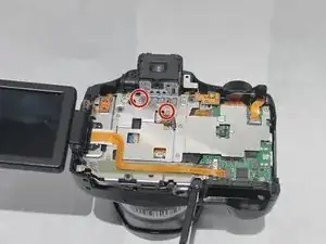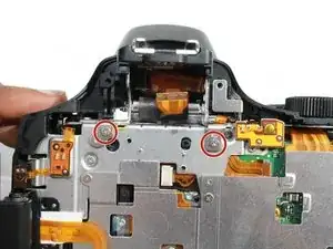 Используйте крестовую отвертку Phillips #00, чтобы открутить два серебристых винта 2 мм #00, расположенных под видоискателем.