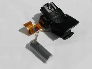 После выполнения вышеописанных шагов аккуратно вытяните блок вспышки из устройства и извлеките конденсатор, расположенный на передней стороне камеры.