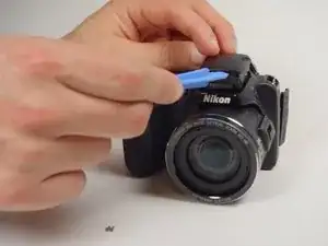 Используйте синюю пластиковую лопатку, чтобы открыть корпус вспышки.