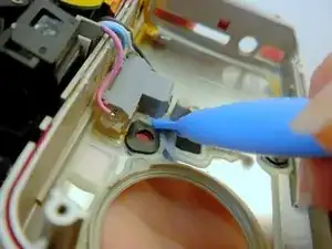 Теперь можно извлечь кнопку затвора. Она не прикреплена к камере и может быть просто снята.