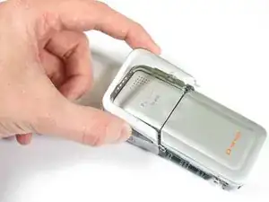 Поверните камеру и снимите рамку с противоположной стороны, потянув либо сверху, либо снизу наружу.