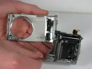 После удаления AV-платы у вас остаётся передняя стенка, прикреплённая к внутренней рамке и блоку вспышки.