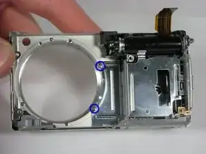 Сначала снимите два синих винта 3,5 мм рядом с отверстием объектива, которыми крепится внутренняя рамка.