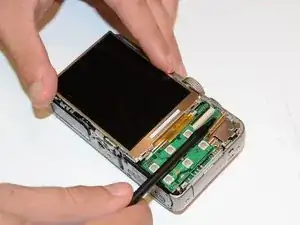 С помощью пластиковой лопатки поднимите экран до щелчка.