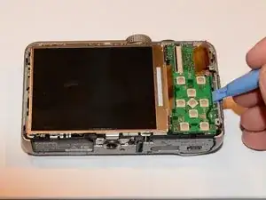 С помощью пластиковой лопатки поднимите плату кнопок до щелчка.
