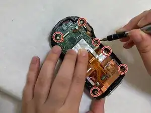 Удалите восемь винтов Phillips #000 длиной 5 мм, скрепляющих цепи между собой.