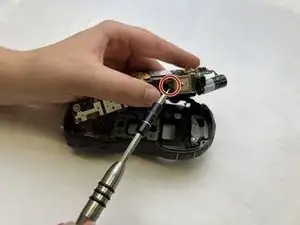 Удалите последние два винта Phillips #000 длиной 2 мм с передней стороны цепи.