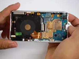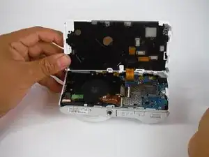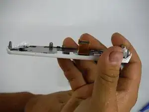 Экран все ещё прикреплен к материнской плате лентовым кабелем. Будьте осторожны, он очень хрупкий.