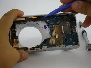 Теперь, когда вы удалили батарею, экран и узел объектива, можно продолжать с демонтажем материнской платы.
