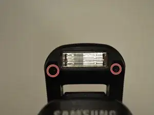 Замена вспышки в Samsung NX30 представляет определённую сложность. Потребуется пайка. При выполнении замены не прикасайтесь к металлическим выводам по обеим сторонам лампы вспышки — они могут вас ударить током.