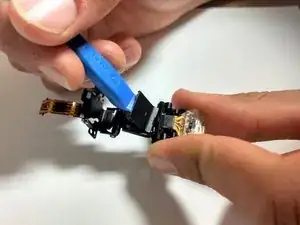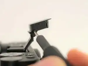 Используйте пластиковый инструмент для открытия, чтобы аккуратно поднять сборку кнопки затвора.