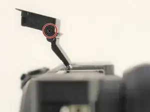 Чтобы получить доступ к задней части камеры, удалите винты, крепящие петлю ЖК-экрана к корпусу камеры.