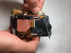 Поднимите компонент вспышки к себе и аккуратно потяните кабель ZIF вверх и от камеры.