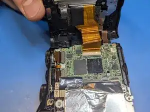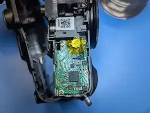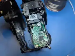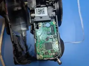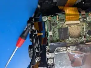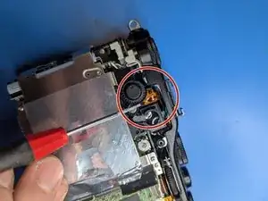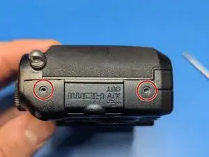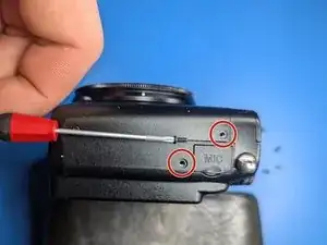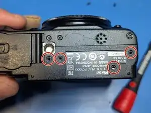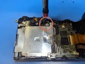 Удалите последний винт, глубоко утопленный в корпусе рядом с видоискателем. Магнитная отвертка поможет вернуть его на место.