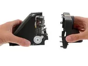 Держите вставленный край лопатки, направленным к задней панели при разделении. Это помогает освободить плотные пластиковые защёлки, удерживающие панели вместе.