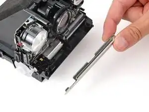 Будьте осторожны при извлечении отвертки — винт может легко упасть внутрь камеры. Если это случится, держите камеру над рабочей поверхностью и аккуратно потрясите, чтобы винт выпал.