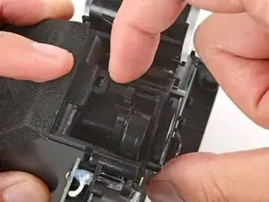 Держание камеры правой стороной вверх помогает предотвратить выпадение белой пластиковой шестерни при снятии панели.