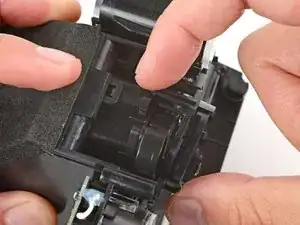 При сборке следуйте этому руководству, чтобы установить рычаг дверцы плёнки и правую шестерню.