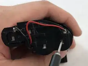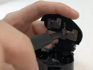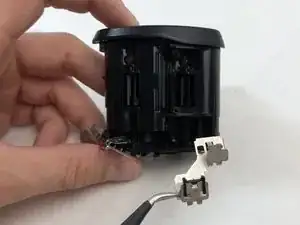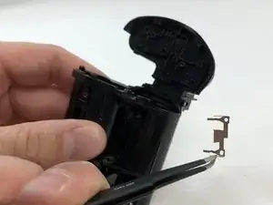 С помощью пинцета извлеките две задние панельные детали с выводов клемм батареи, находящиеся в крышке отсека для батареи.