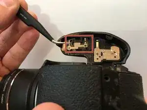 Удалите один винт Phillips #000, 0.6 мм, с левой стороны фотоаппарата.