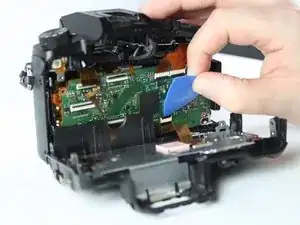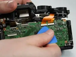 Удалите указанный небольшой гибкий кабель с верхней части основной платы.