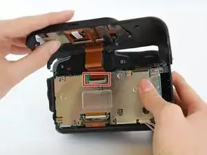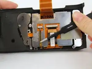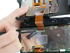 Используя тупые пинцеты, извлеките левый ленточный разъём из разъёма без усилия.